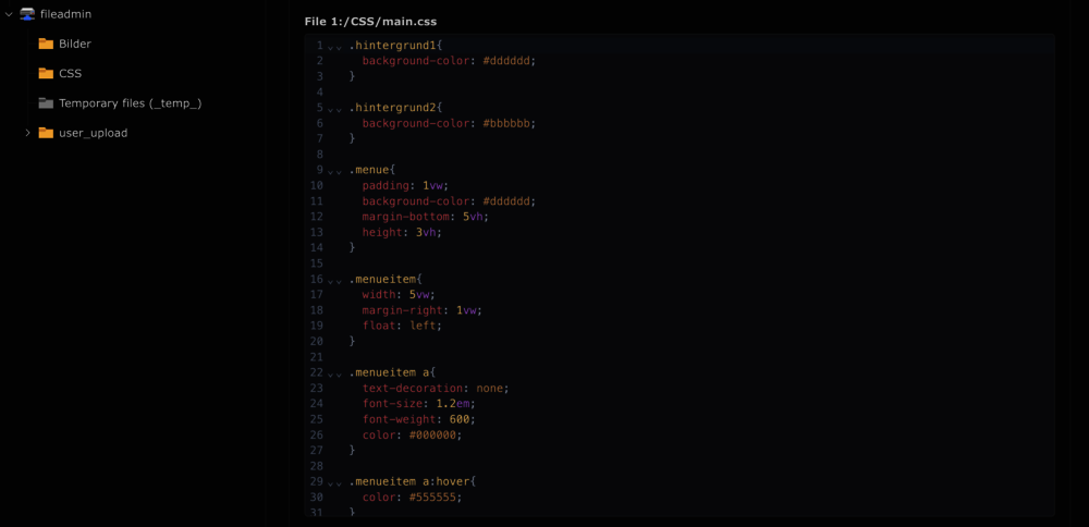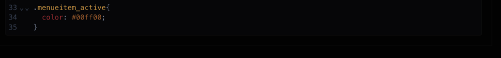 Nun wollen wir, damit wir wissen, auf welcher Seite wir uns gerade befinden, im Menü markieren, welche Seite die aktuell aktive ist. Vorhin haben wir das Attribut “NO” (für “NORMAL”) kennengelernt, das quasi den Default-Zustand definiert. Mit “CUR” (für “CURRENT”) können wir den Menüpunkt der aktuell aktiven Seite ansprechen. Wir möchten, dass dieser in einem giftigen Grün erscheint. Hierzu definieren wir uns eine neue CSS-Klasse: