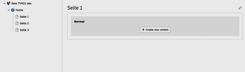 Um mit Typoscript Menüs zu erstellen, verwenden wir die Objekte “HMENU” und “TMENU”. Bevor wir damit arbeiten können, brauchen wir in unserem Backend ein paar Seiten: